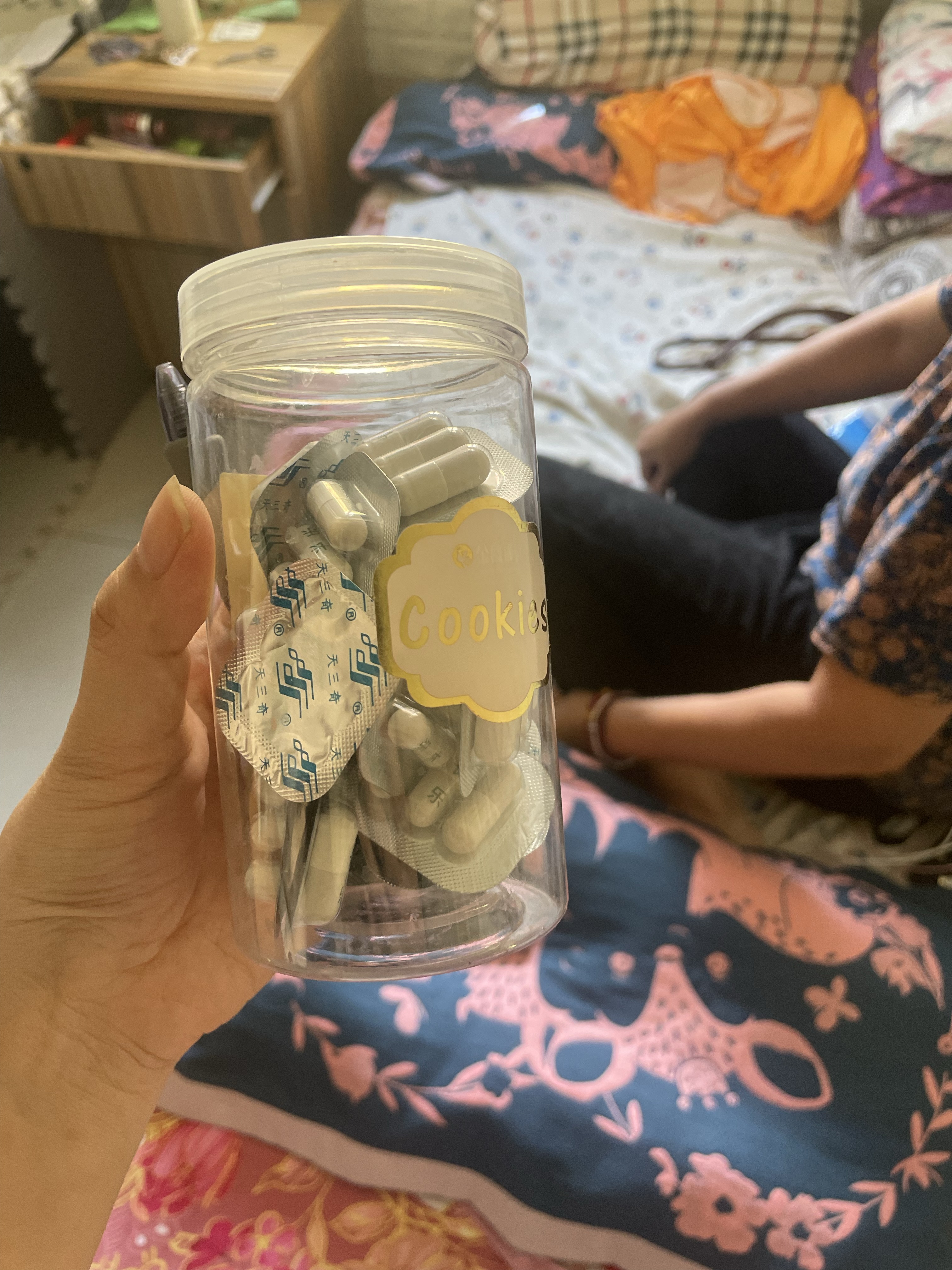 贾庆娟把长乐胶囊放在罐子里藏进被窝里。新京报记者 黄依琳 摄