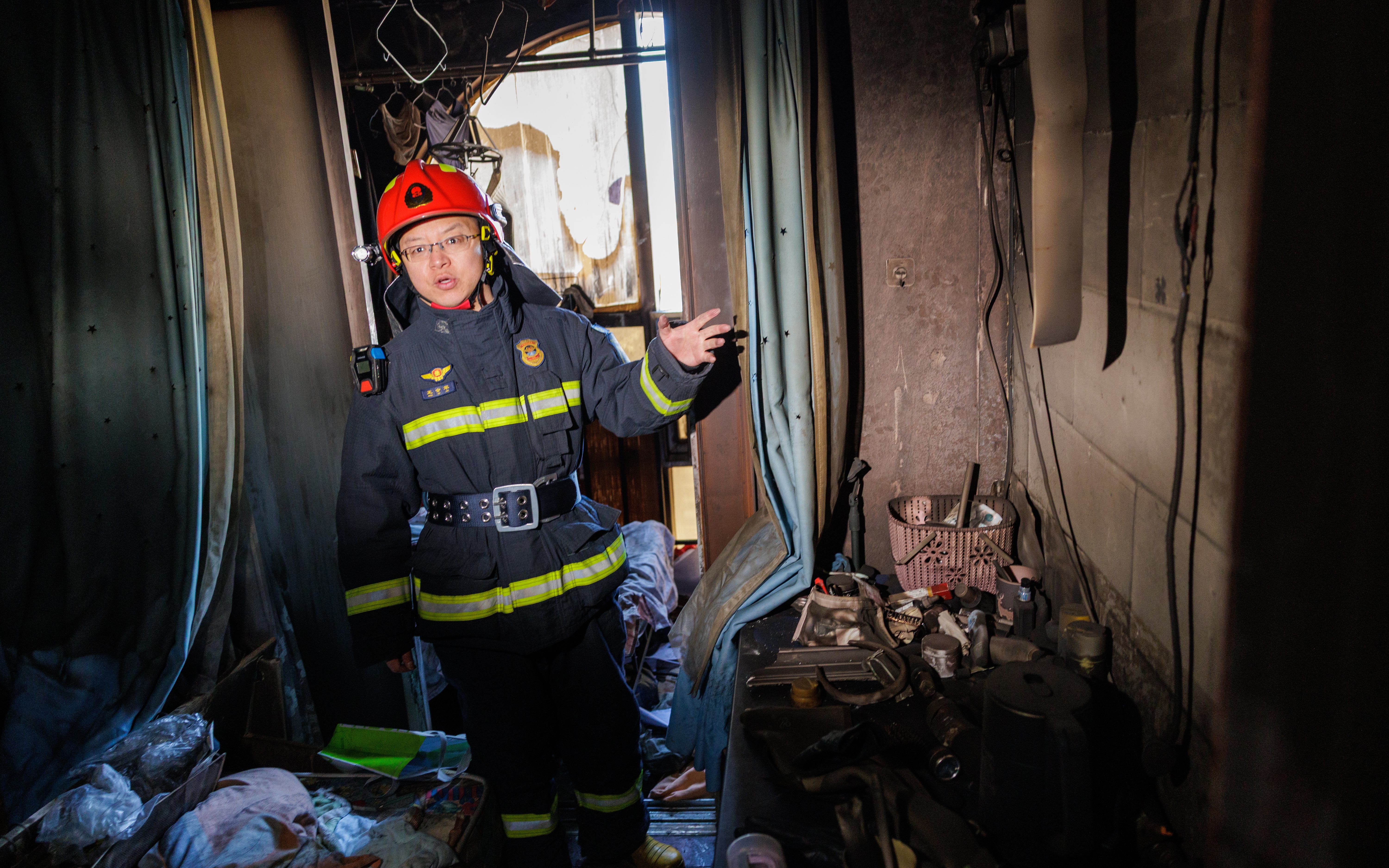 王会军回忆,当时那对父女情况比较严重,女孩半个身子探出窗外尝试呼吸新鲜空气,而她父亲已经躺在地上昏迷。救援人员给他们戴上防护面罩后紧急撤离。由于卧室在二层,屋内浓烟弥漫,被烧毁的家具塑料装饰、玻璃散落一地,给救援增加了难度。