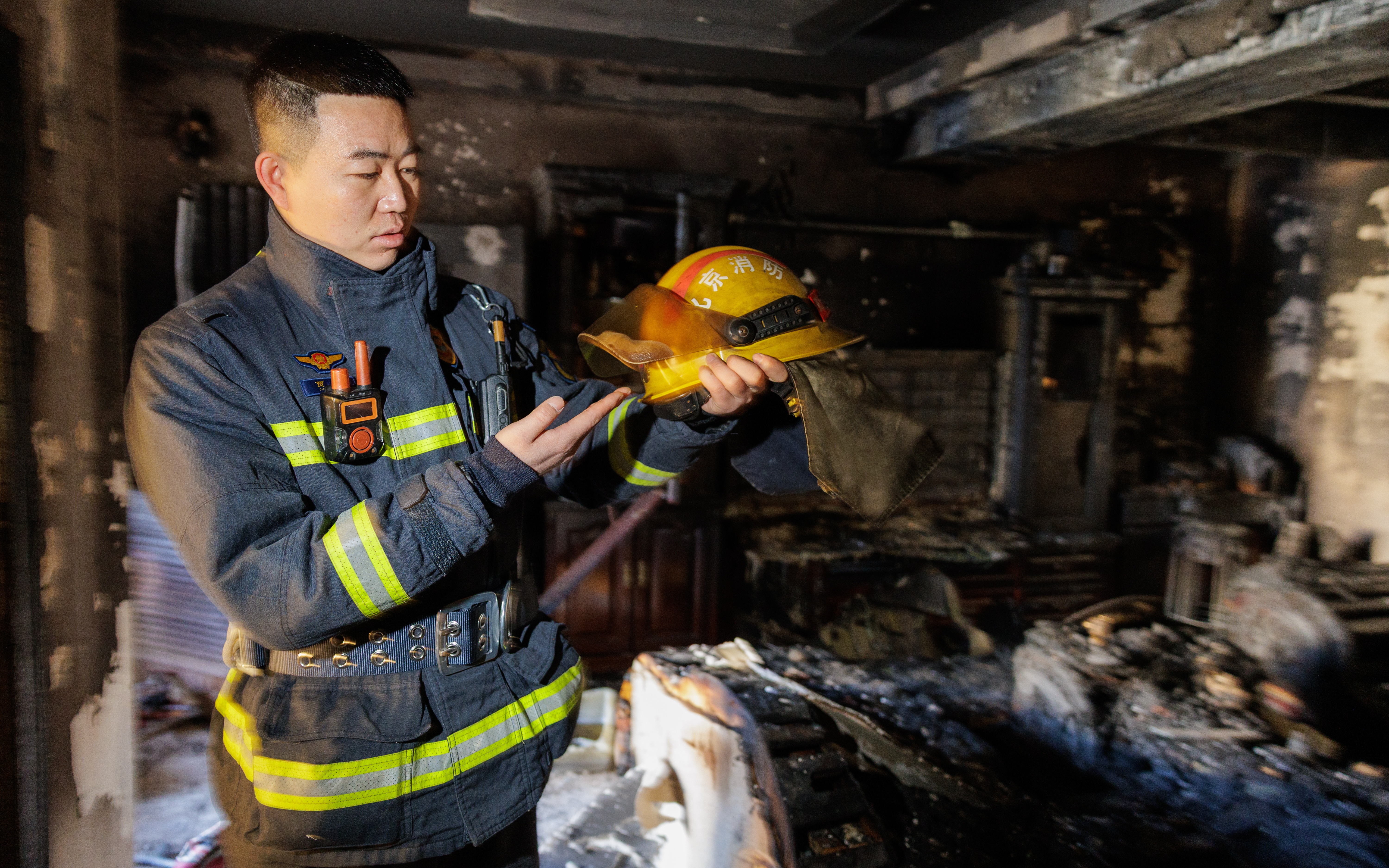 1月3日,北京市海淀区一高层居民楼顶层住户起火,消防员从现场搜救出3人,伤者均已第一时间送往医院救治。1月5日,新京报记者回访现场,事发楼道依旧有浓烈的烧焦气味,房屋内过火痕迹严重,消防员在现场讲述了救援经过。值得注意的是,在此次事故中,受伤最轻的一名年轻男孩,也是事故的报警人,他在面对突发情况时处置得当,自救方法正确,为消防员的救援争取了宝贵时间。