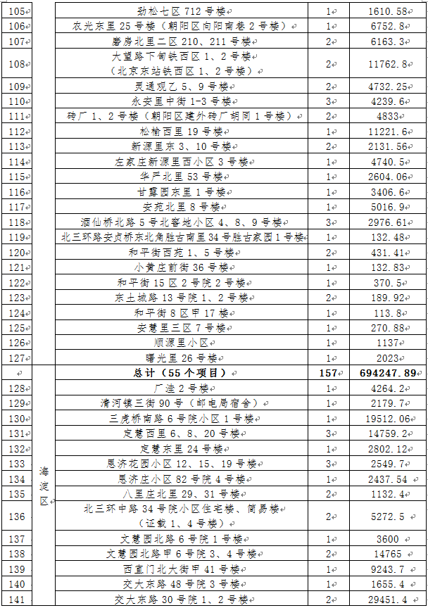 新京报讯 据“北京发布”微信公众号消息,近日,北京市住建委公布了央企在京第五批老旧小区综合整治项目的名单。共有311个项目纳入名单中,涉及866栋楼,建筑面积约341万平方米。