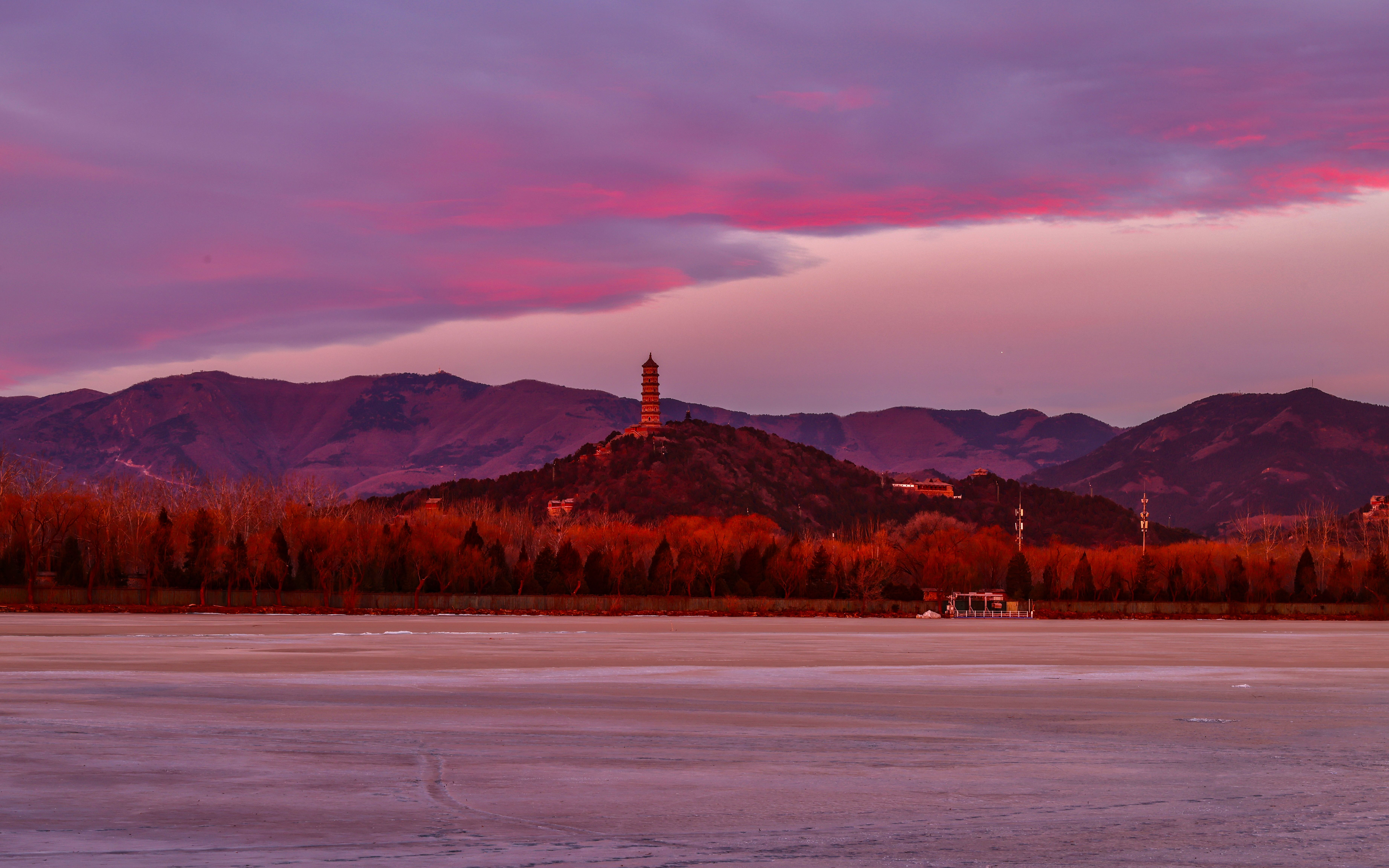 今晨,北京颐和园迎来新年首场壮丽朝霞。随着天边泛起橙红色光芒,漫天彩霞与颐和园佛香阁、十七孔桥及远处的西山形成色彩艳丽的奇幻景观。许多摄影爱好者及晨练市民早早守候在十七孔桥附近。等到太阳缓缓升起,霞光逐渐染红整个天空,古典建筑在绚丽背景映衬下更显庄严恢弘,吸引游客驻足拍照。