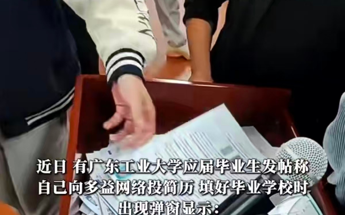 据红星新闻报道,1月7日,有广东工业大学应届毕业生发帖称,她向广州多益网络股份有限公司(下称“多益网络”)招聘官网投递简历,在“教育背景”一栏填写毕业学校时却弹出提示,称“因广东工业大学老师罗某某在软件企业认定相关事件中的颠倒是非行为,已被系统列入黑名单,无法投递简历。”