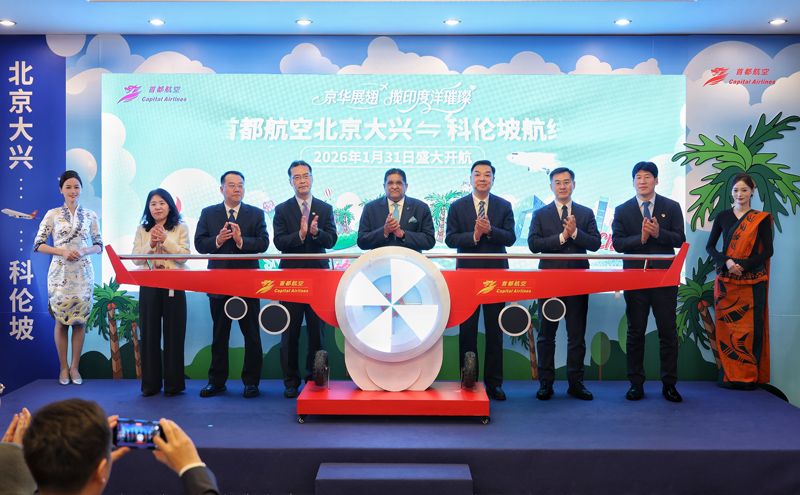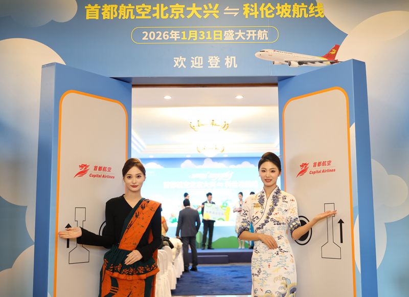 1月8日,首都航空在北京斯里兰卡驻华大使馆举办北京大兴往返科伦坡国际航线开航新闻发布会。发布会上宣布,将于1月31日开通北京大兴国际机场直飞科伦坡的国际航线,航班班期为每周二、周六执飞。该航线是中国北方地区与斯里兰卡唯一直飞航线,更是首都航空新开通的另一条“首都飞首都”的重要空中通道,标志着首都航空在践行国家“一带一路”倡议、完善南亚航线布局上迈出关键步伐。