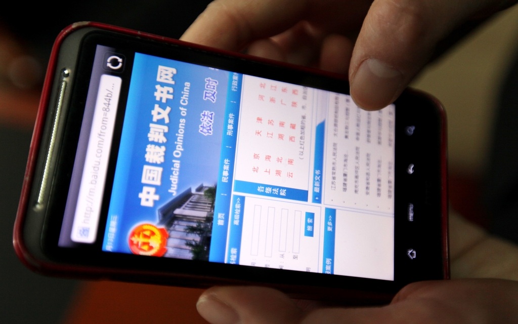 ▲一名市民在手机上浏览“中国裁判文书网”。图/IC photo