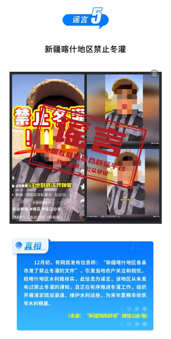 中国互联网联合辟谣平台2025年12月辟谣榜发布