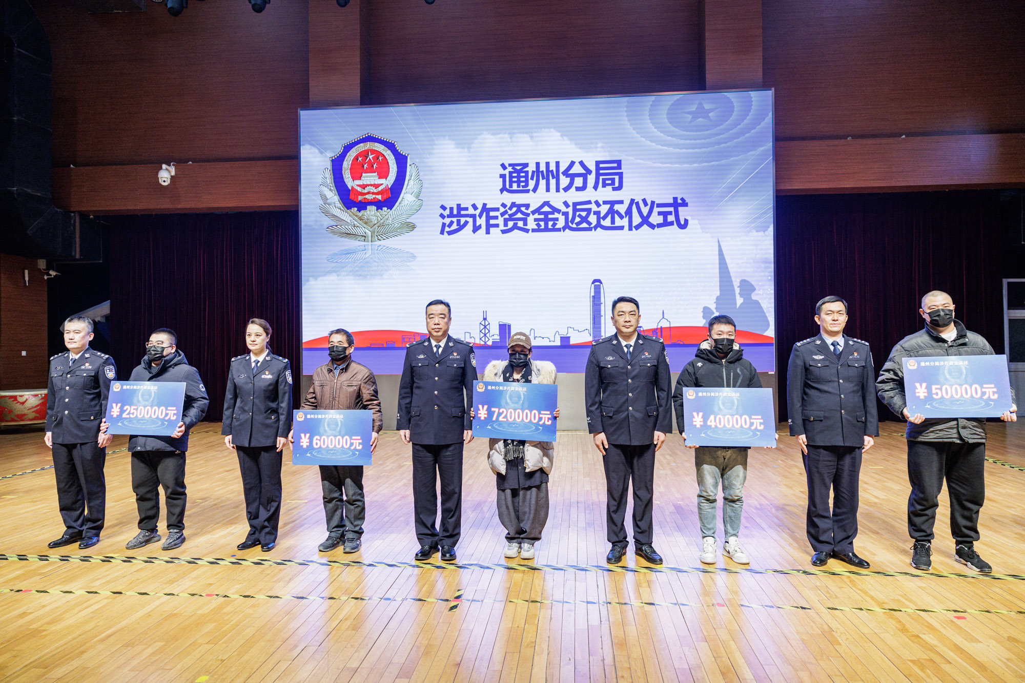 现场举办了诈骗案件涉案资金返还仪式。新京报记者 王子诚 摄