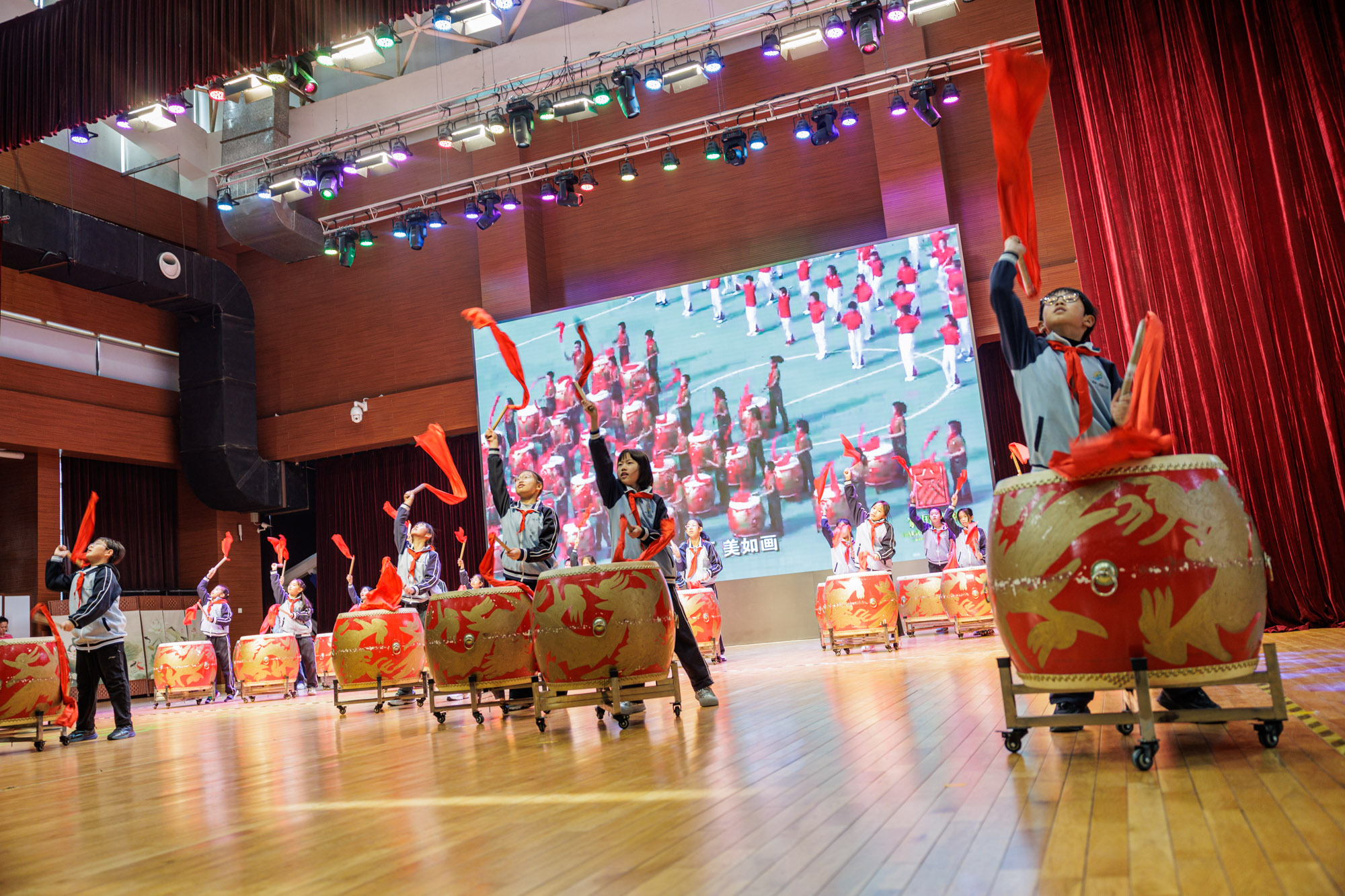 芙蓉小学鼓队带来的《铁血中国娃》战鼓表演。新京报记者 王子诚 摄