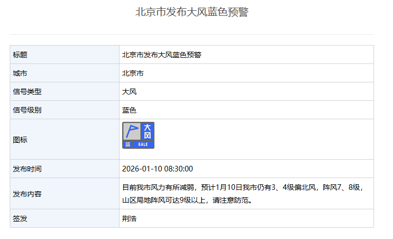 北京市降级发布大风蓝色预警
