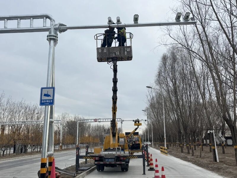 在沙阳路施工现场,工作人员正在调试违法抓拍和视频监控设备,将与动态称重检测设备、信息发布等共同组成非现场执法系统,接入北京市治超联网管理信息平台,构建24小时不间断的“电子眼”监管网络,自动生成包含称重数据、车辆照片、视频录像的完整数据链并推送至执法平台,避免“人歇车不停”的监管盲区。