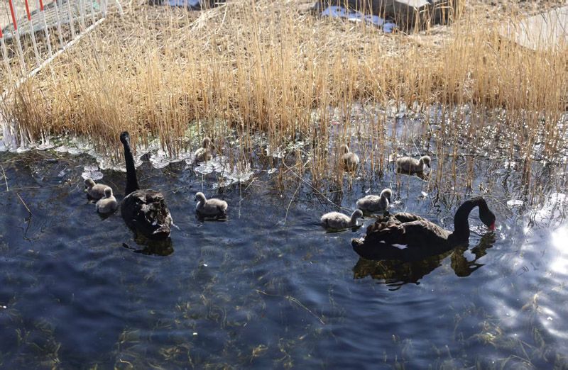 圆明园新晋“顶流”:黑天鹅喜添8只幼崽