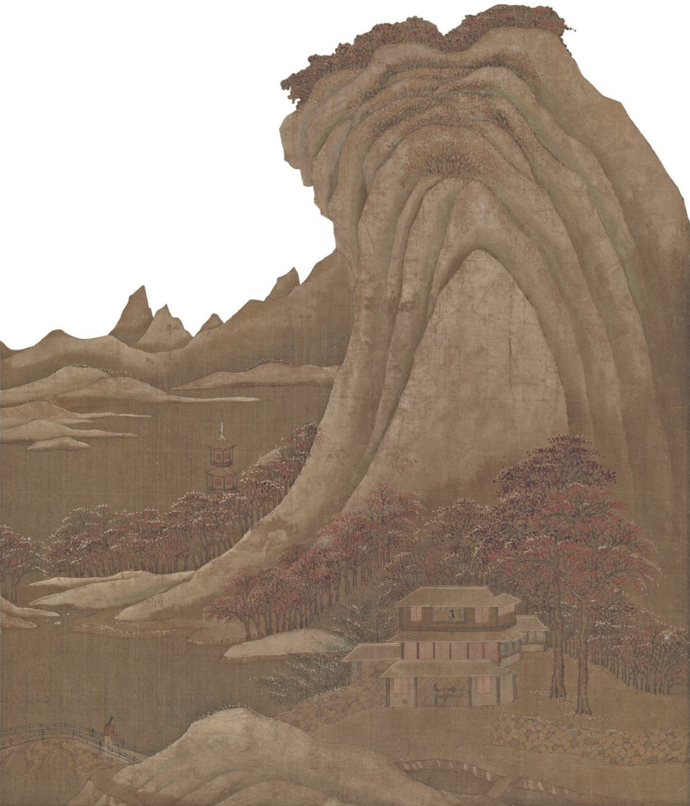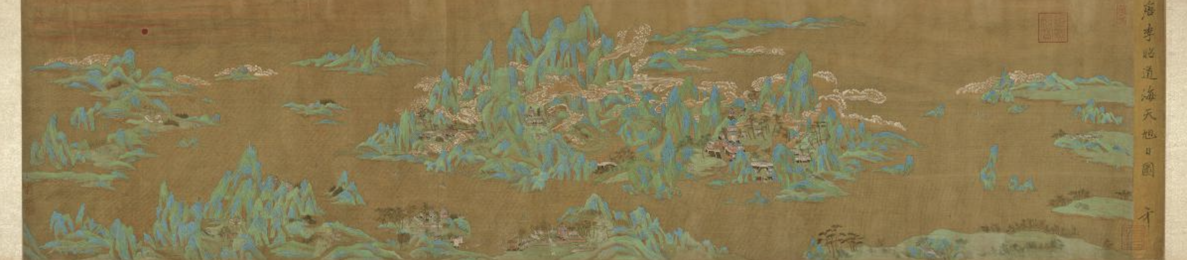明人绘唐代李昭道款《海天旭日图》,描绘了海上仙山的景象。