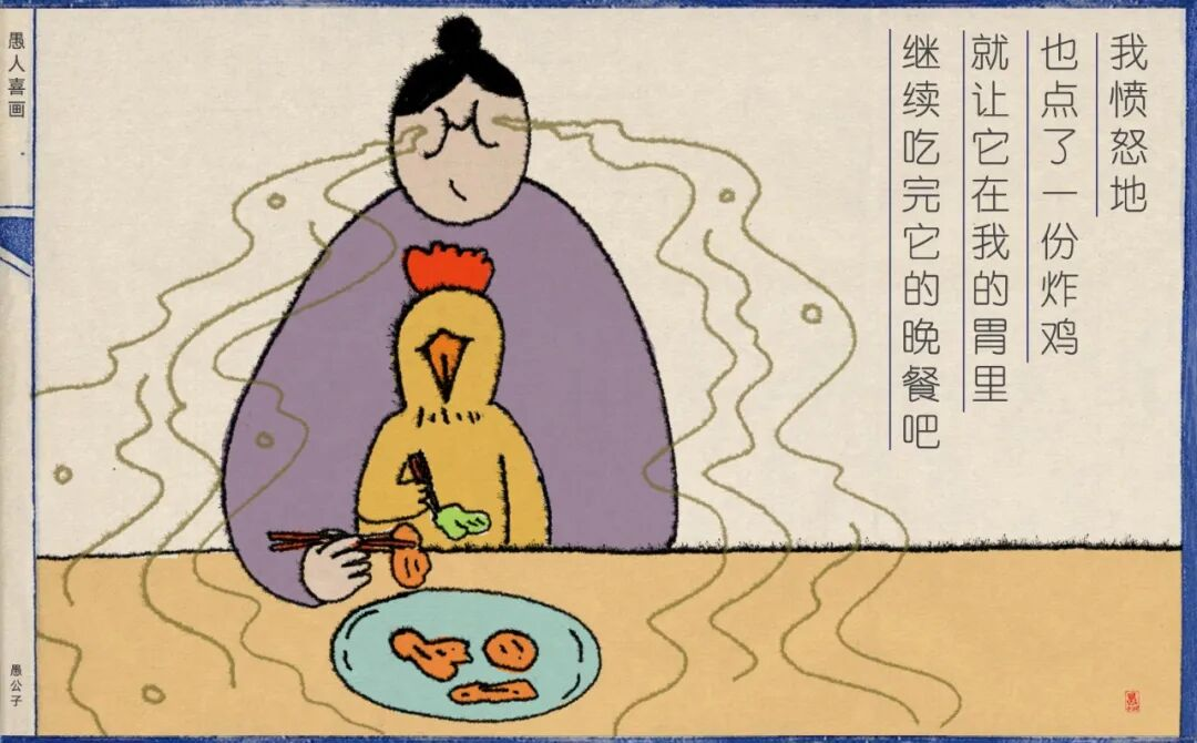 我朋友皱着眉头吃完炸鸡