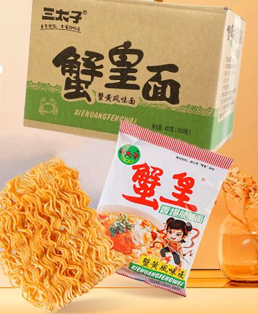 三太子蟹黄干脆面作为干脆面领域的老牌子,三太子一直专注蟹黄味这个细分赛道,凭借“真材实料含蟹黄”的诚意和咸鲜酥脆的口感,积累了一批忠实顾客。近几年品牌借助电商发力,以高性价比吸引了不少年轻消费者,凭借精准的品类定位和扎实的品牌积淀,成为细分领域的标杆品牌。