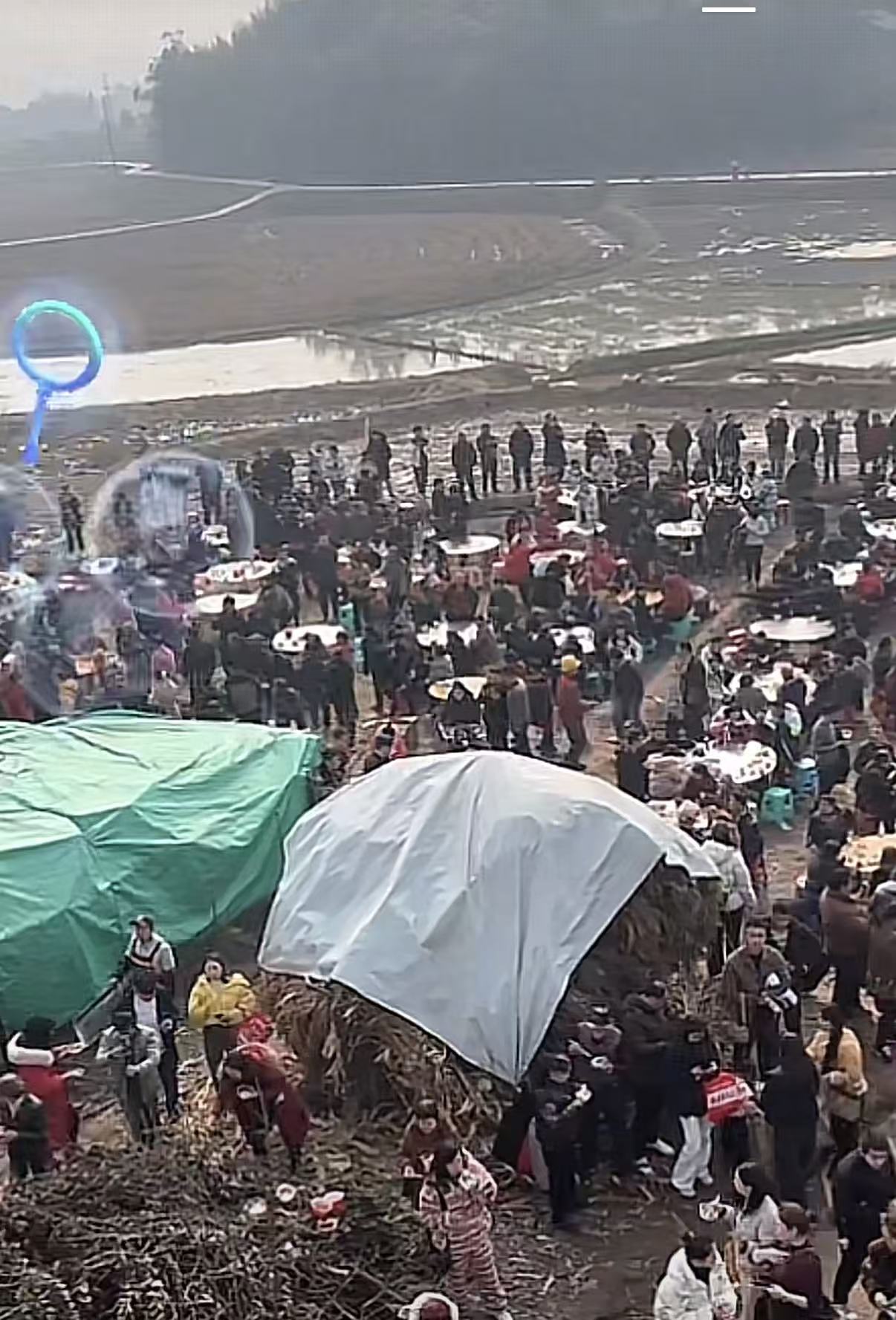 上述负责人介绍,这次活动共杀了5头猪,其中2头是“呆呆”家的,“1头是网友送的,还有2头是在文旅发动下,企业赠送的黑猪。不完全统计,11日、12日超5000名游客到达现场。现场布置了30来桌,游客都是吃的流水席。”