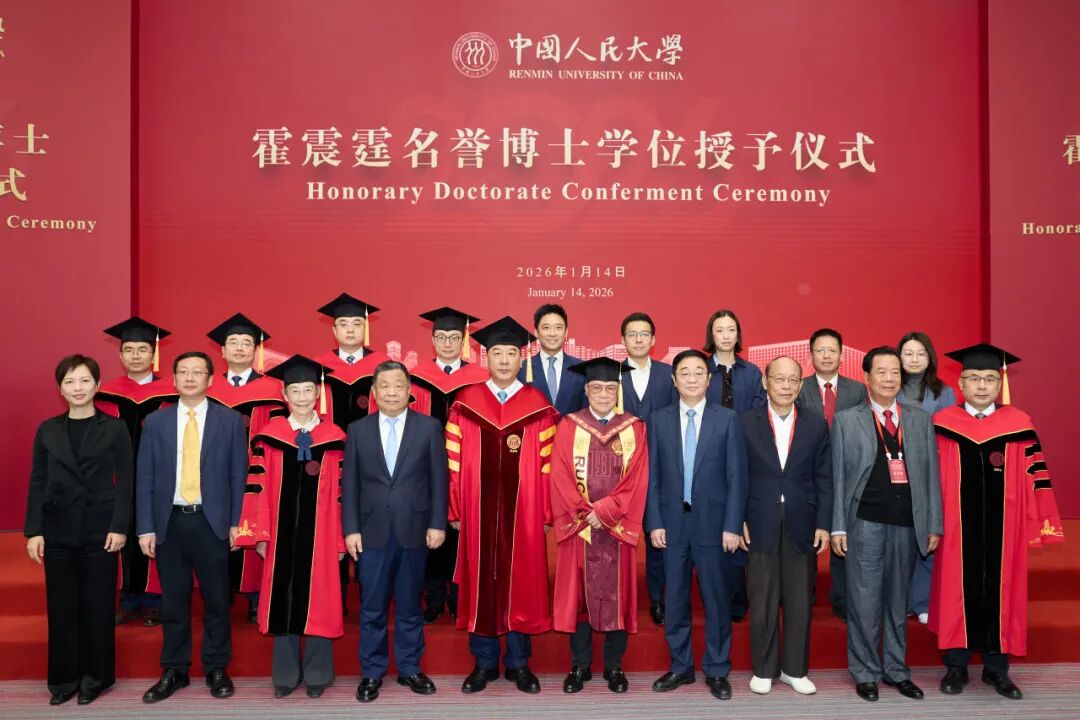 新京报讯 据中国人民大学消息,今天,在中国人民大学深圳研究院前海院区,中国香港体育协会暨奥林匹克委员会会长、国际奥委会名誉委员,霍英东集团主席霍震霆先生获授中国人民大学法学名誉博士学位。
