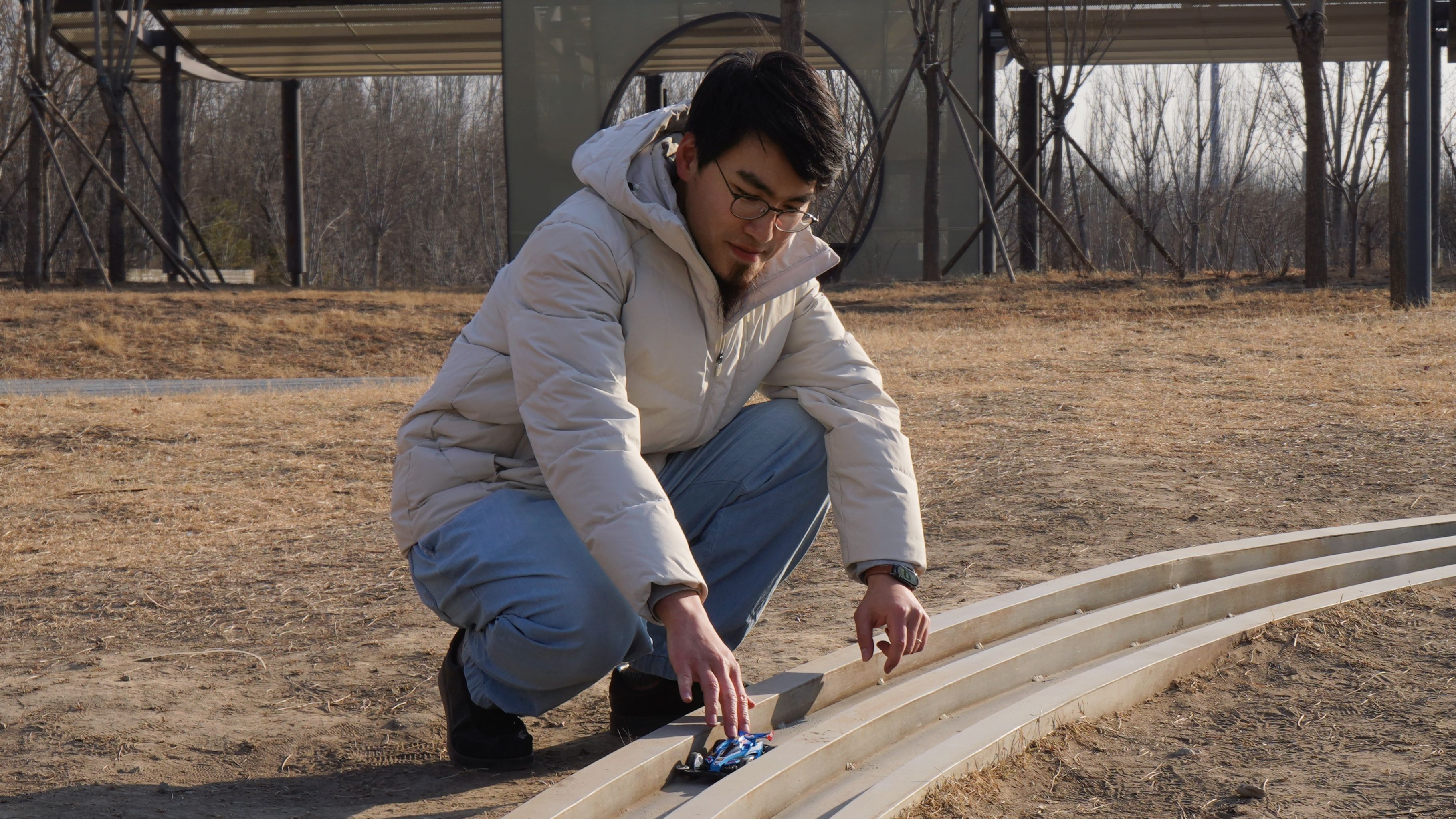 不过,在公园里设计赛道,源于一次灵光乍现。2021年底,王维琦所在的团队承接了温榆河公园景观设计项目。“当时我设想在山坡上做大滑梯,让这里变得更加有趣。但是后来我发现滑梯与这一区域的特点不太符合。”那段时间,王维琦一直在琢磨,怎么能在不破坏景观氛围的前提下,增加区域的互动性和趣味性。