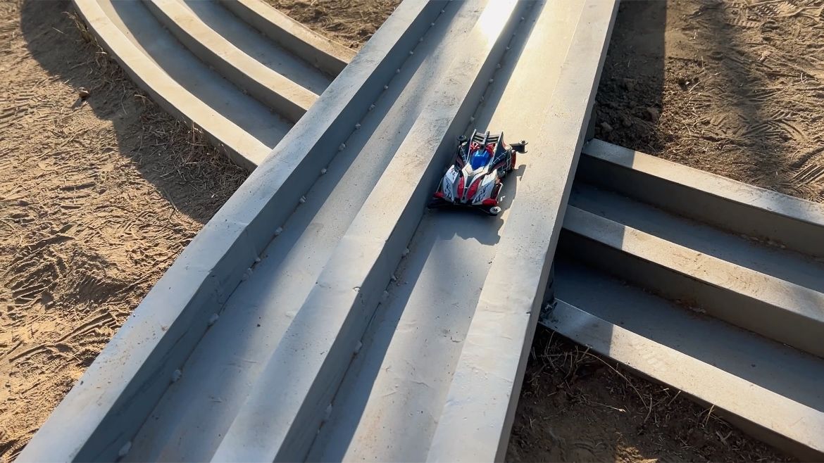 这个想法让王维琦兴奋不已,但他心里也没底,“我不是专业的赛道设计师,对四驱车赛道的标准一无所知。”为了实现这个想法,他开始上网搜资料,从四驱车赛道的净宽、净高,到坡度、弯道的设计规范,一点点琢磨。最终,这套四驱车赛道景观设计方案一次性顺利通过。