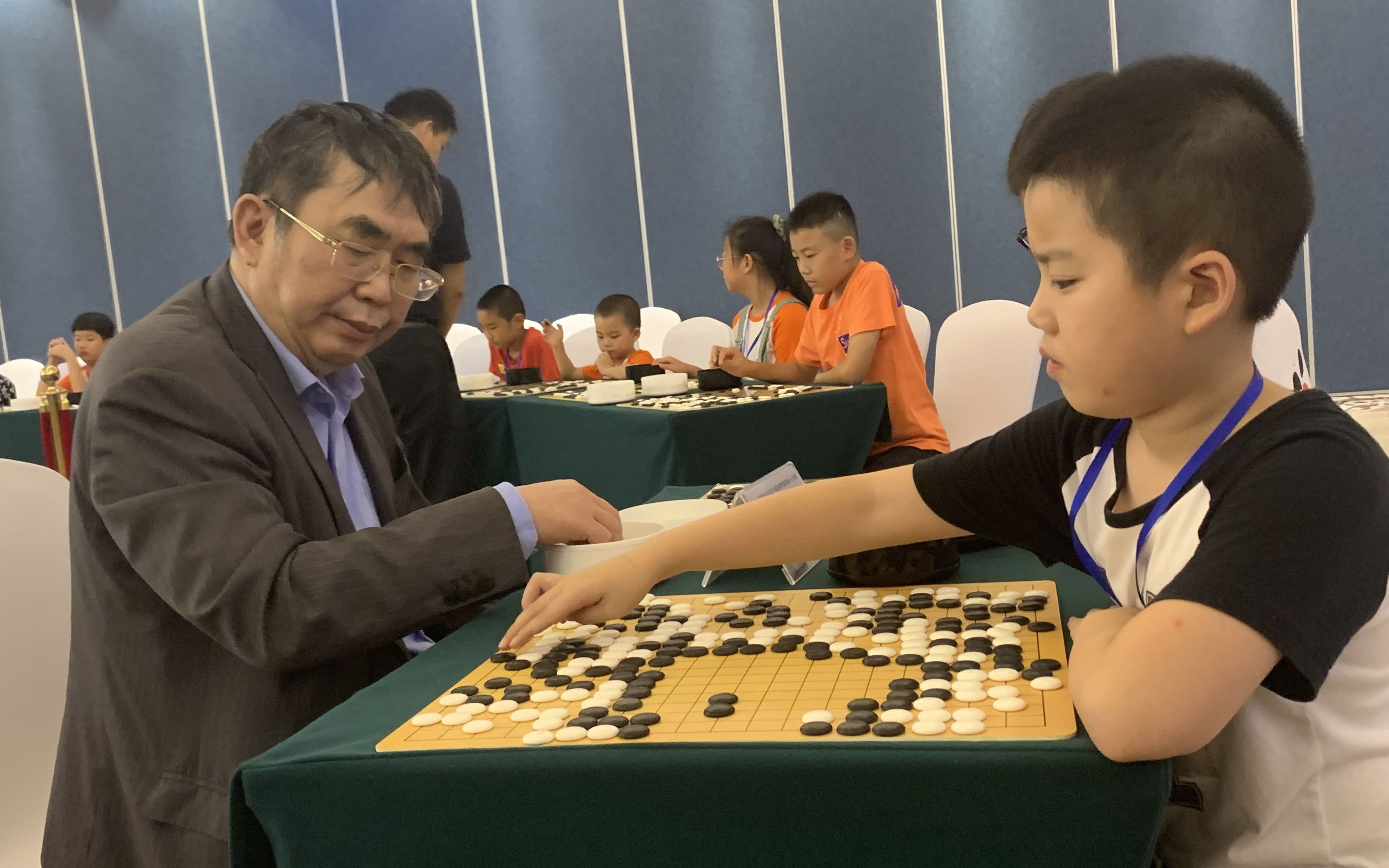 聂卫平生前指导小棋手下棋瞬间。新京报记者 孙海光 摄