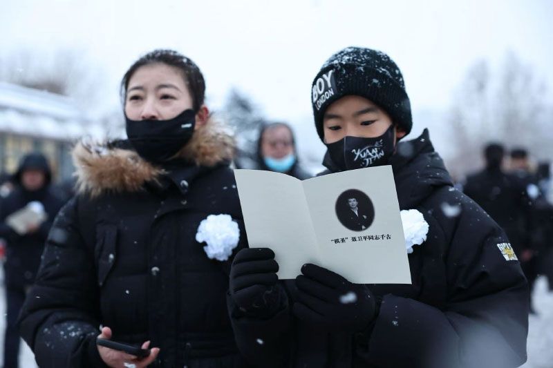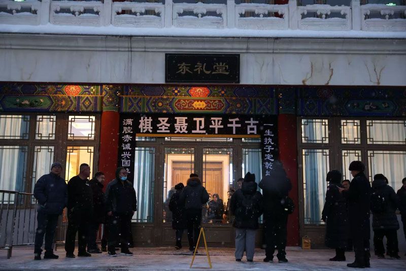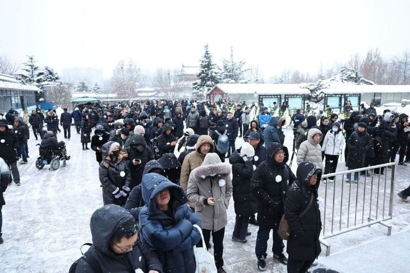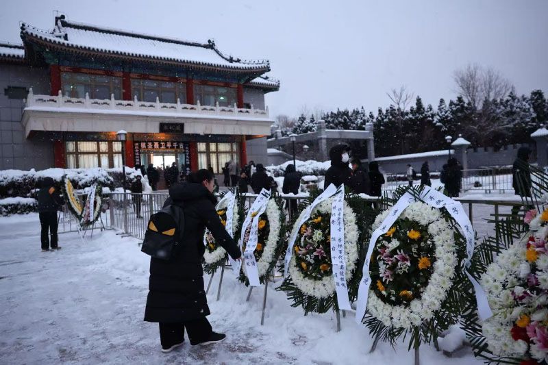 1月18日,北京降雪,众多市民在八宝山东礼堂外等待送别聂卫平先生最后一程。