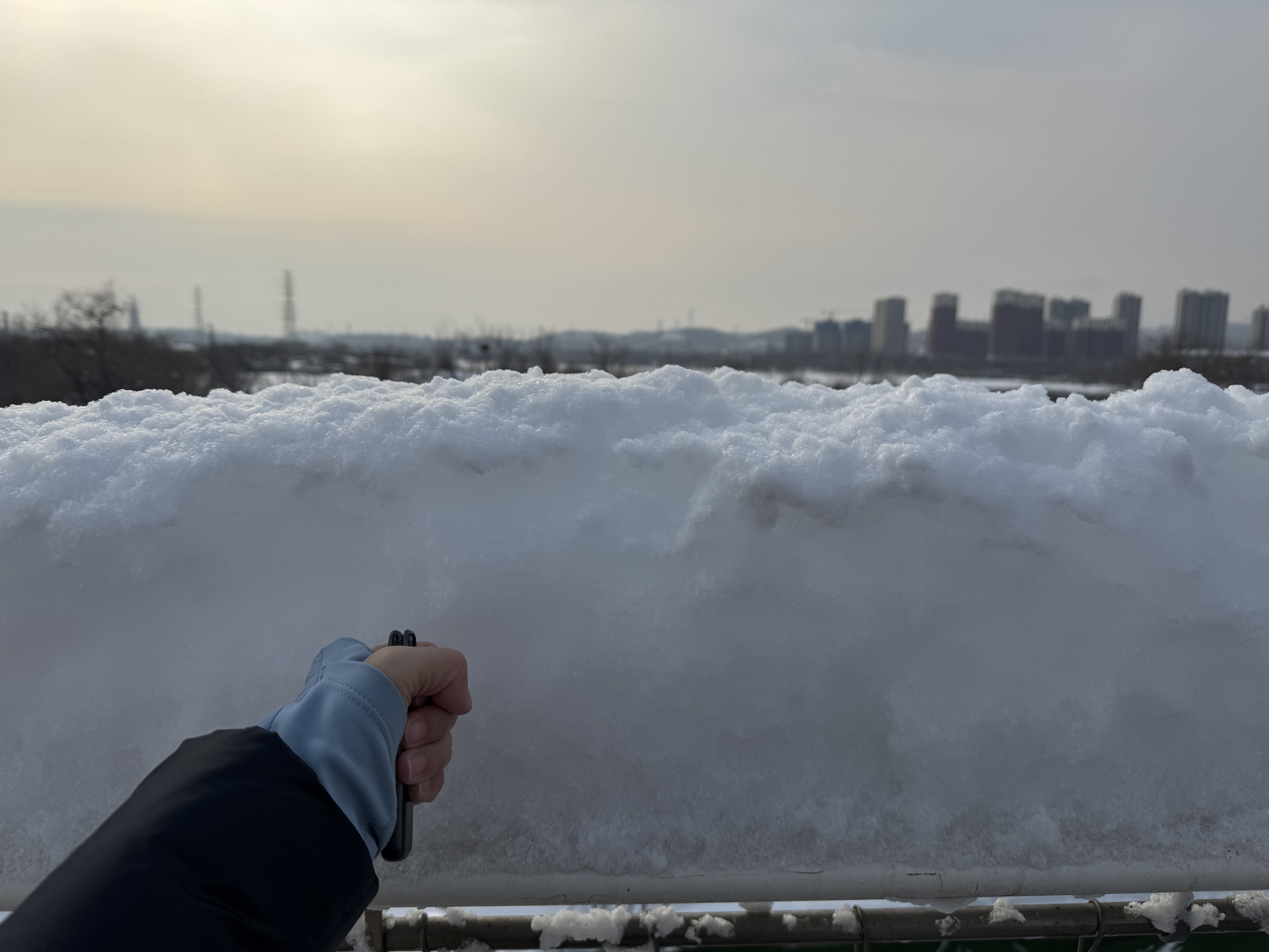 新首钢大桥护栏上的积雪在二十厘米左右。新京报记者 王景曦 摄