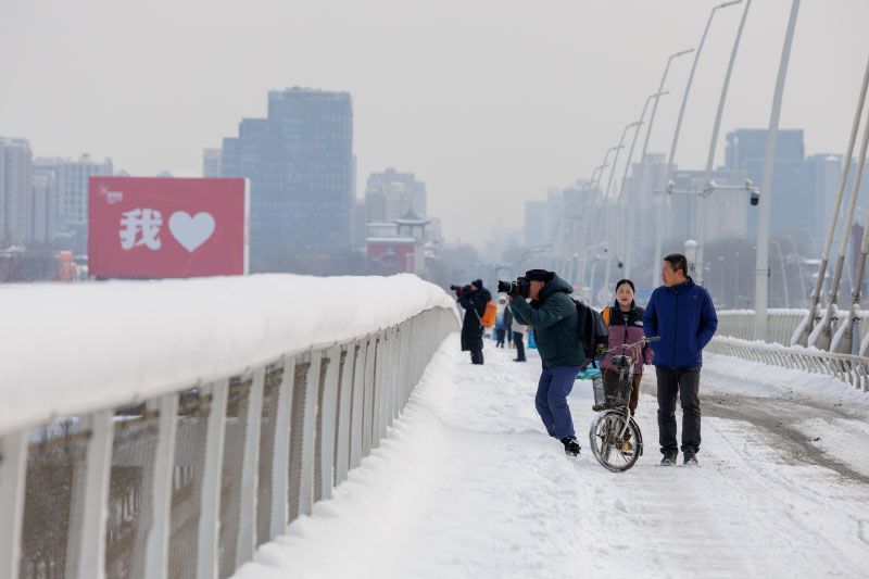 新首钢大桥成绝佳机位,市民打卡2026京城初雪