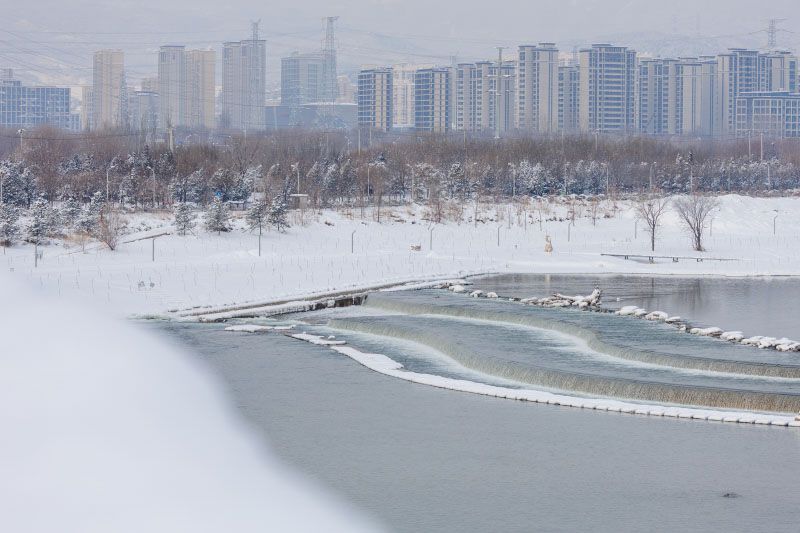 1月18日,北京迎来2026年初雪,站在新首钢大桥上远眺,首钢园尽收眼底。