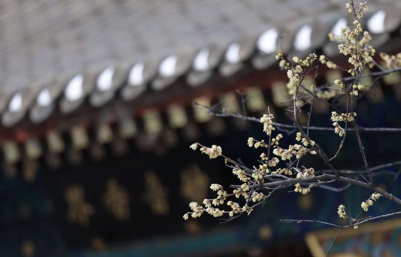 1月18日,北京大观园,几枝蜡梅凌寒绽放。