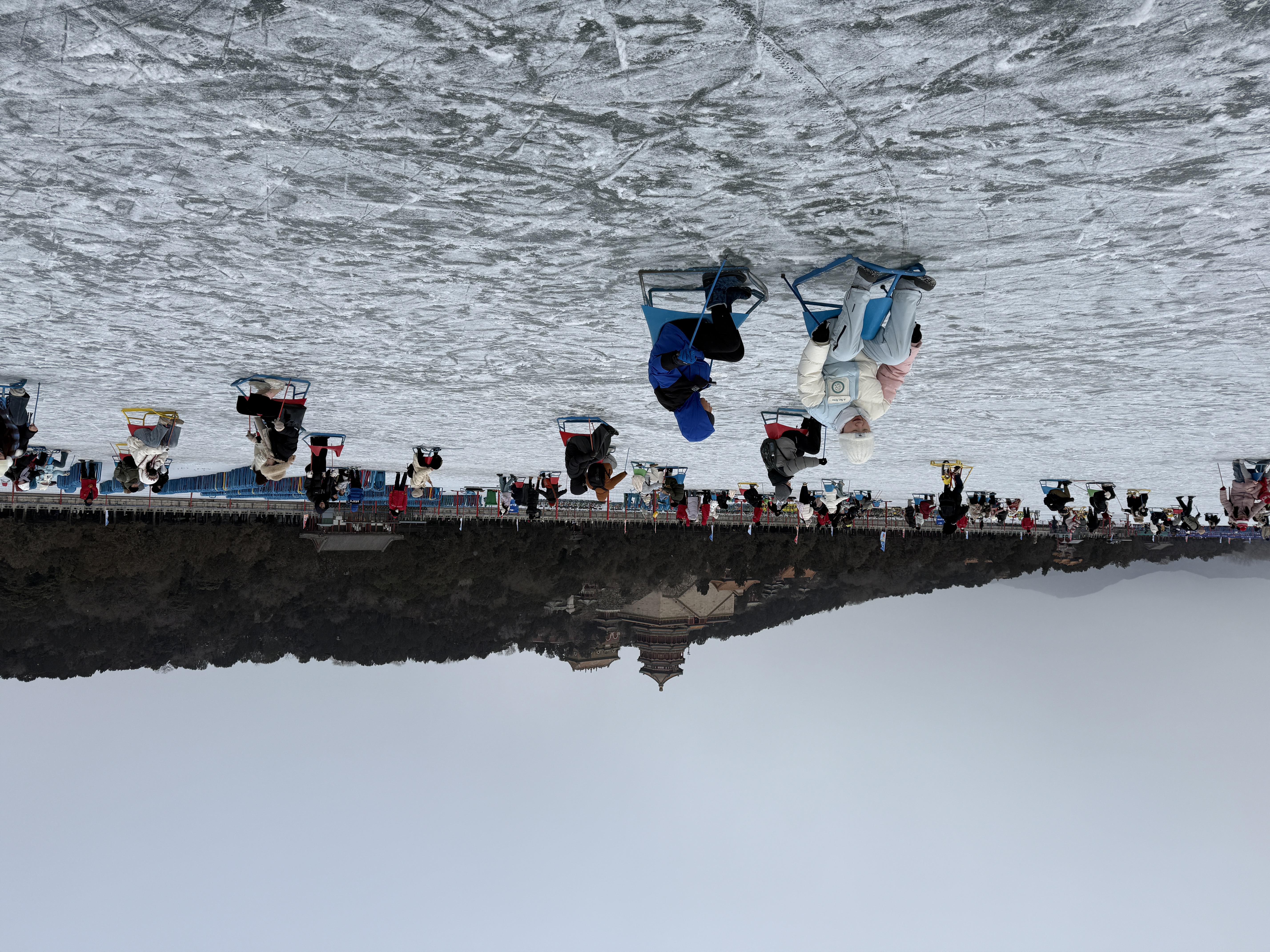 周六进入一年中最冷的时段“四九天”,天寒地冻挡不住市民玩冰热情。“去年冰场台子搭了一半,天气就回暖了。今年可得抓紧时间玩。”去年的暖冬,让王小姐颇为遗憾,周六一看到颐和园冰场开放的消息,她就冒着小雪来了。“其实雪落在冰面上,冰就不太滑溜了,冰车滑起来有点费劲,但雪后的颐和园太美了,感觉收获了双倍快乐。”