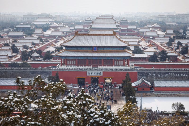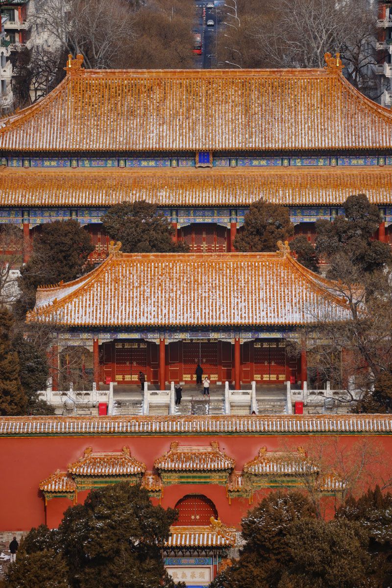 景山向北眺望,中轴线的雪后风光尽收眼底。