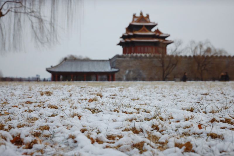 故宫角楼成了雪中的焦点。