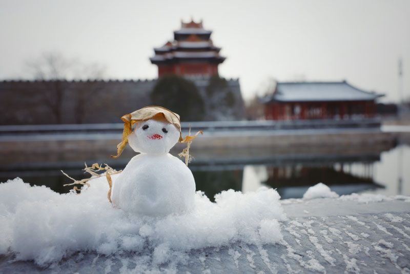 憨态可掬的小雪人立在一旁。