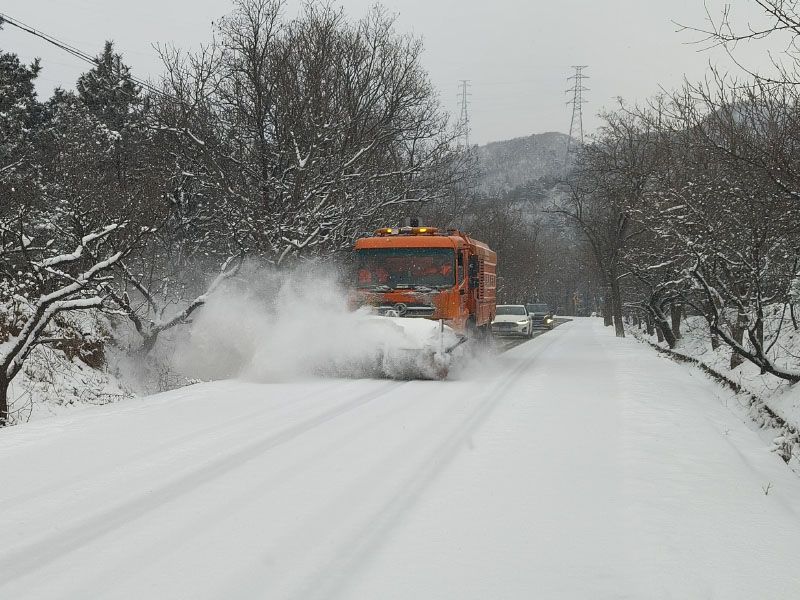 1月18日,昌平区高芹路除雪作业。