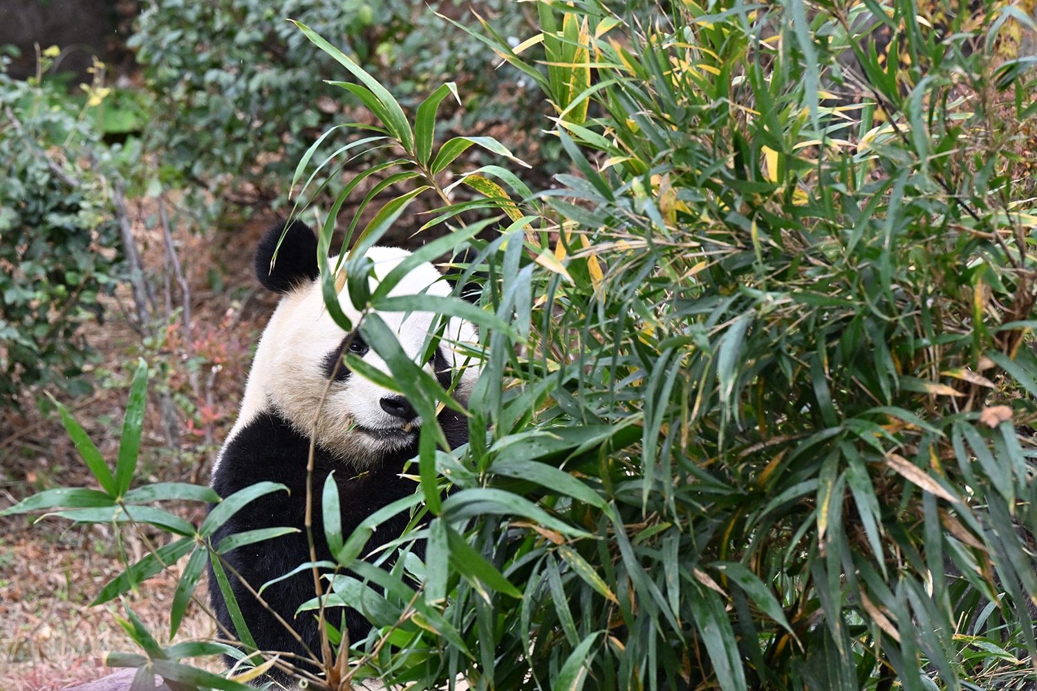 2025年12月20日,日本东京上野动物园,大熊猫“晓晓”在竹间。 图/高氏贵博创建的“每日熊猫”博客。