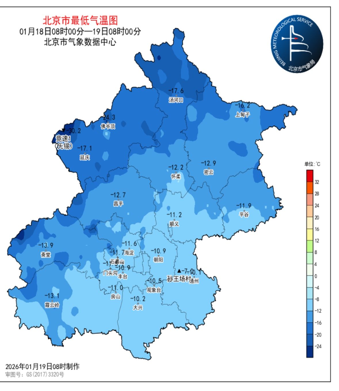 据气象专家介绍,昨天(1月18日)观象台监测到的最高气温为-3.8℃,为2025年10月以来新低;今晨的最低气温为-10.5℃,为2025年入冬以来第二低,今年1月2日监测到的-11.4℃为2025年入冬以来最低气温。