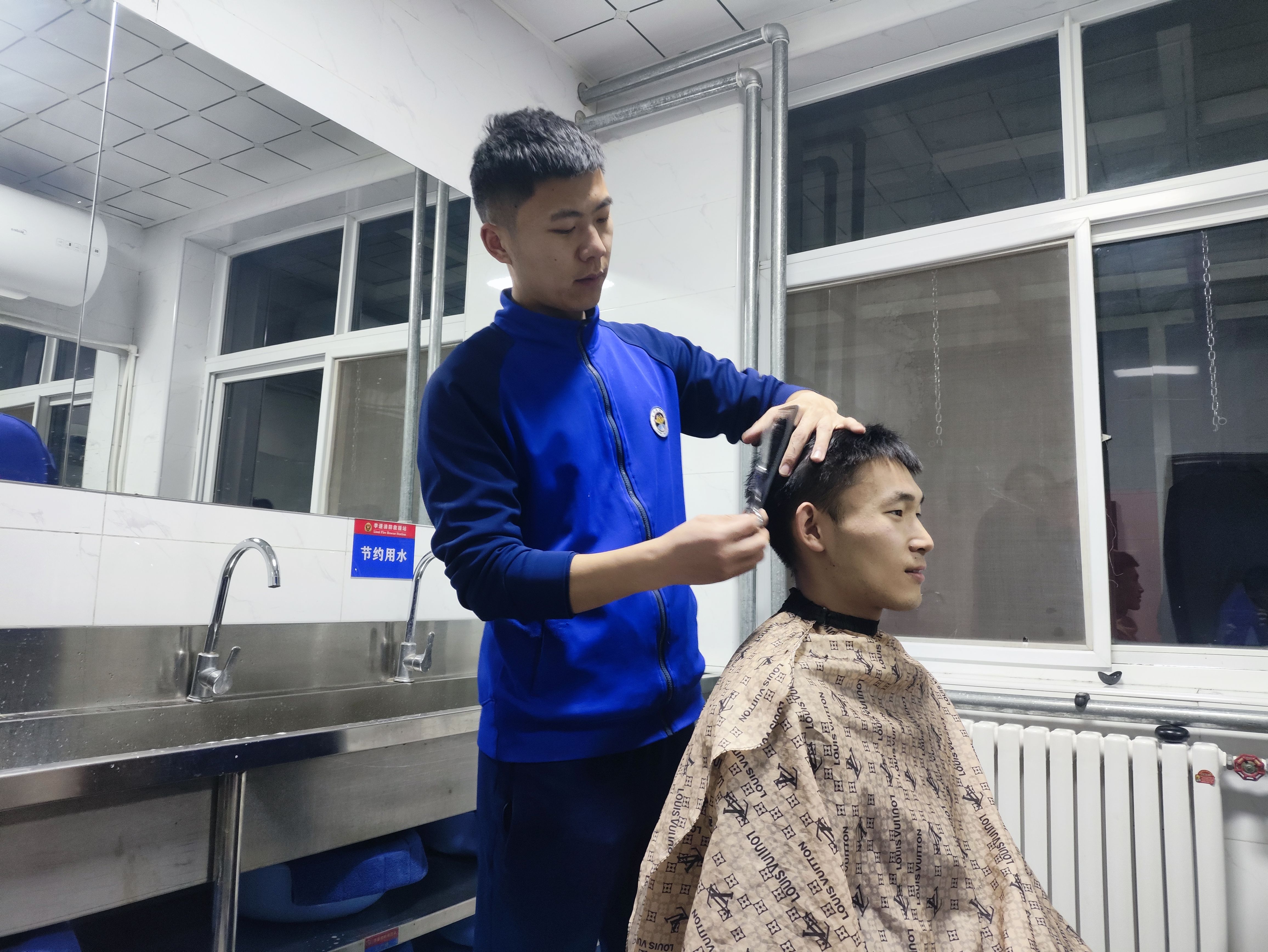 在消防队的紧张生活中,他还有一个特殊的“技能”——理发。他利用业余时间,通过网络教程和向专业理发师请教,逐渐掌握了理发的技巧,日常为队友们理发。“消防站是我第二个家,我要和兄弟们一道,用青春和汗水守护一方平安。”