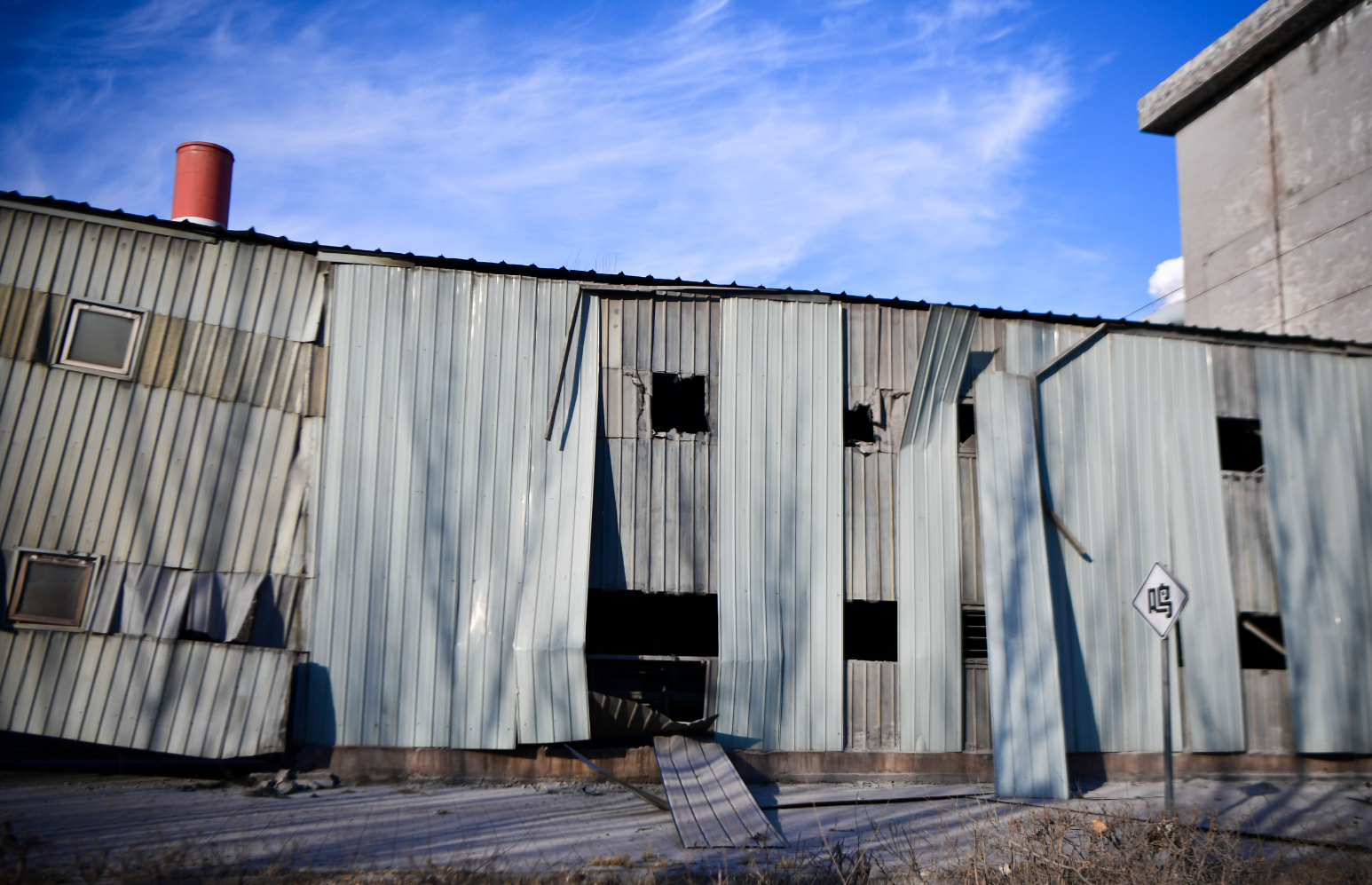 图为1月19日下午,厂区内部分厂房结构变形。记者张枨摄