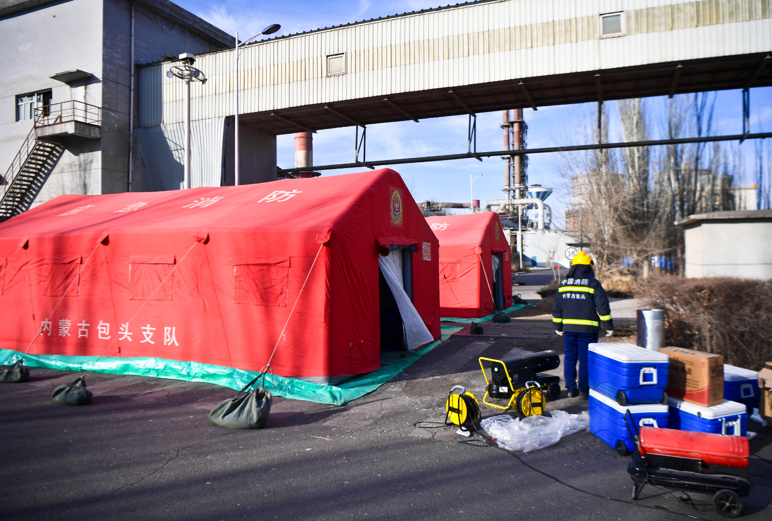 图为1月19日下午,厂区内救援队伍帐篷。记者 吴勇摄