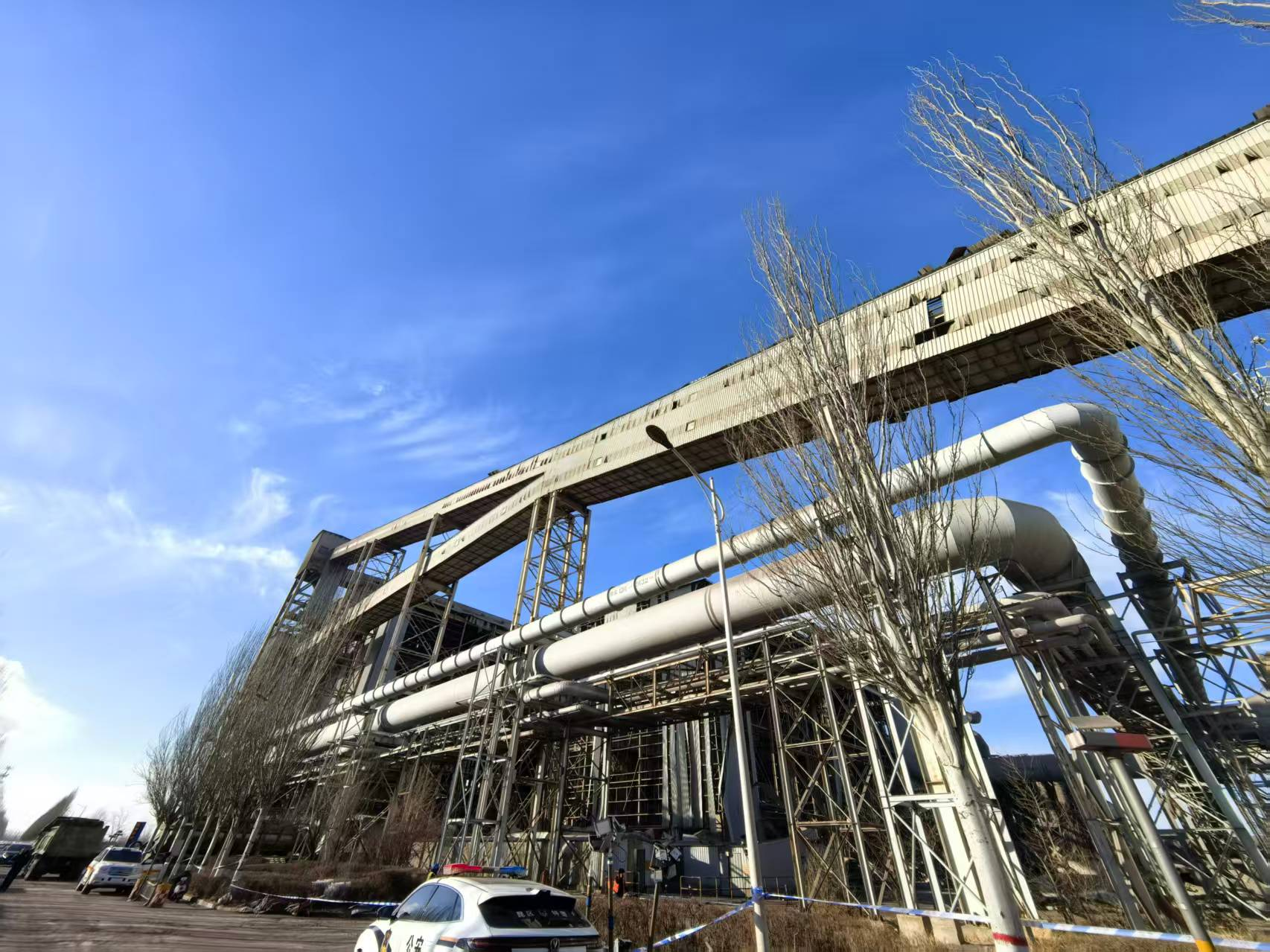 在厂区内,可见多处建筑受爆炸冲击严重受损,部分厂房结构变形,窗户玻璃大面积碎裂。为了保障安全,大片区域已拉起警戒带进行隔离,非救援人员禁止进入。空气中仍可闻到一丝刺鼻的气味,地面散落着砖石、金属碎片等杂物。