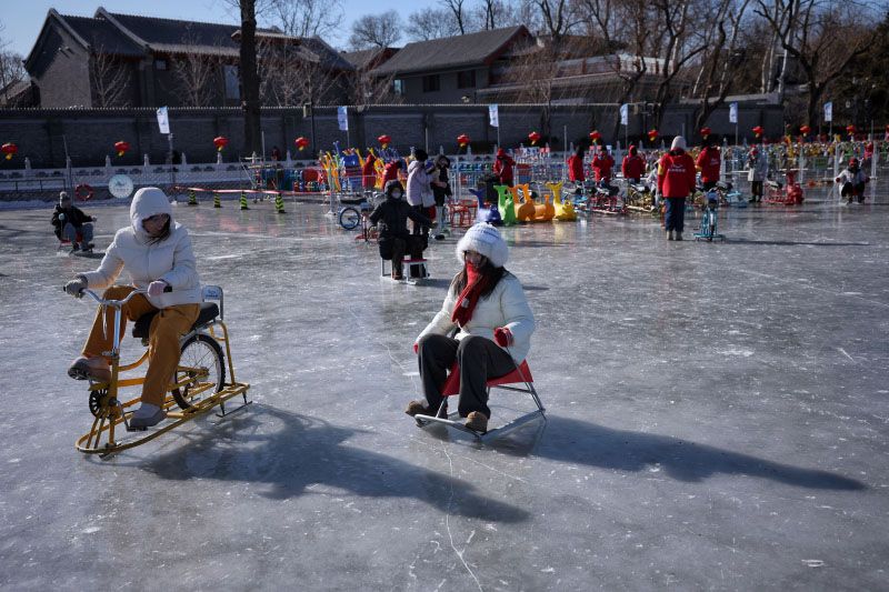 1月20日,什刹海后海冰场正式开门营业。后海冰场总面积10万平方米,空间划分三大功能区:速滑区专为速滑爱好者量身打造;教培区配备专业教练,提供滑冰培训服务;综合区可体验冰车、冰上自行车等趣味项目。