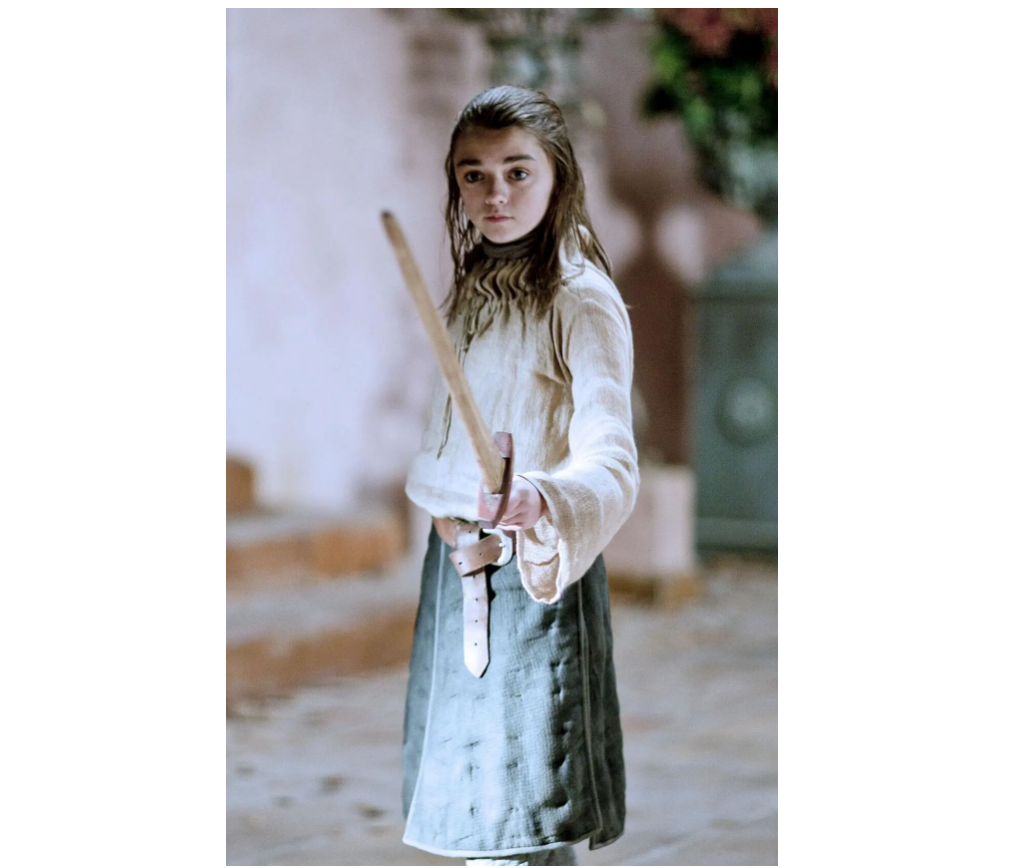 根据乔治·R. R. 马丁作品改编的电视剧《权力的游戏》(Game of Thrones,2011)第一季,被“无面者”选择的艾莉亚·史塔克。