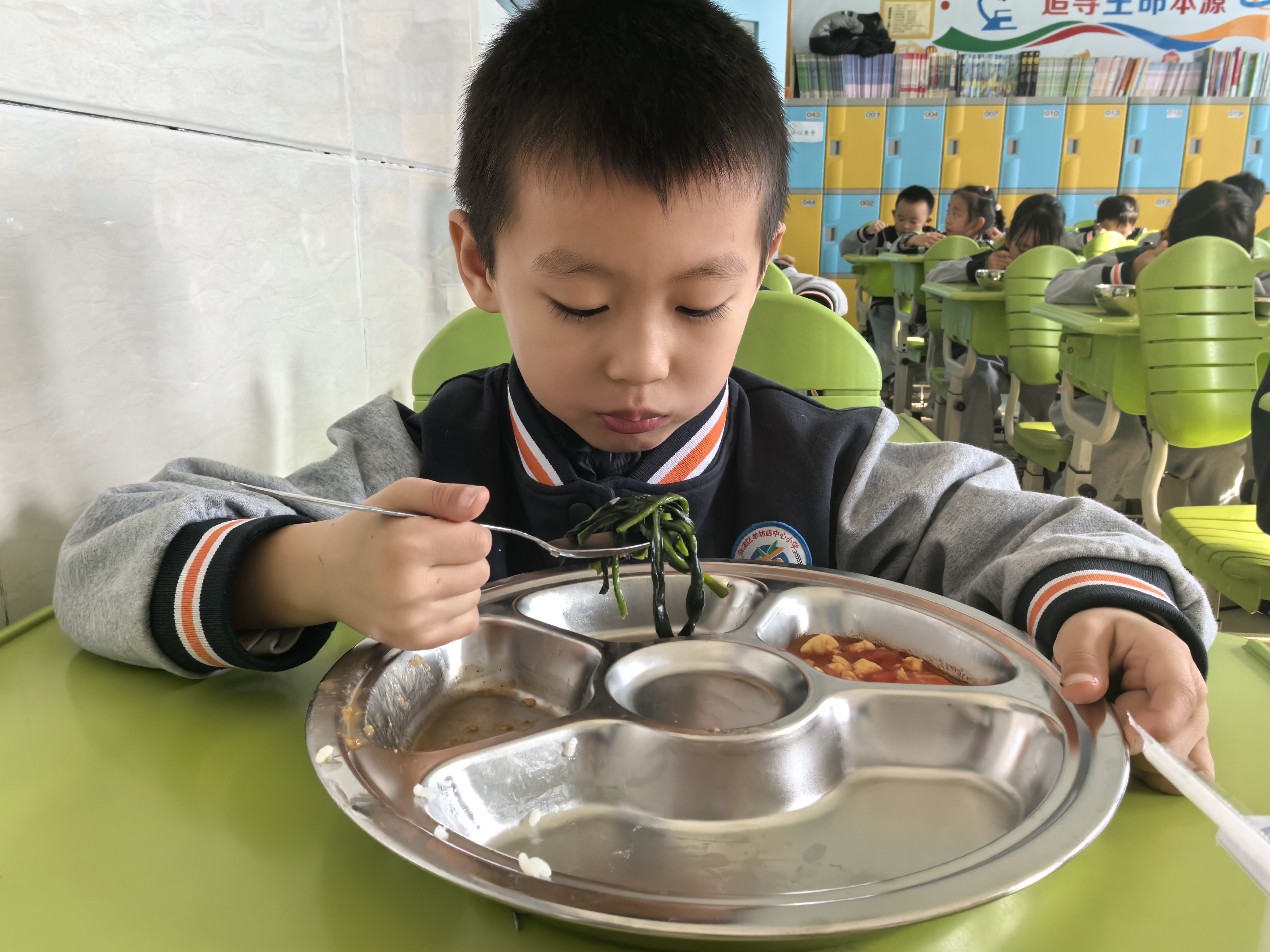 “老师,我是第一个吃完的。”1月6日中午时分,羊坊店中心小学一年级5班的潘佳南率先吃完了午饭。他告诉记者,因为有自己喜欢吃的烧麦,所以吃饭格外快,他还特意跟在班级陪餐的校长说道,“今天我比你快。”与此同时,二年级1班的杨歆妤正在吃西红柿炒鸡蛋,“米饭配西红柿炒蛋特别好吃。”