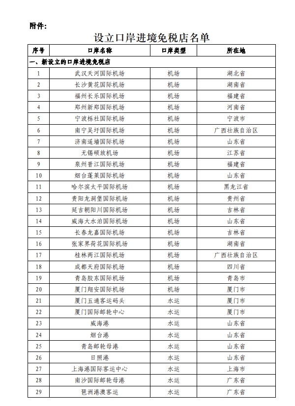 附件:设立口岸进境免税店名单