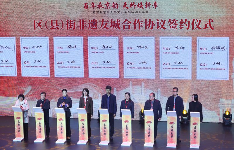 开幕式上举办了区(县)街非遗友城合作协议签约仪式,天桥街道与河北省邢台市襄都区、河北省保定市竞秀区、河南省开封市顺河回族区、河南省洛阳市老城区、河南省安阳市文峰区、山西省长治市武乡县、福建省宁德市蕉城区、福建省泉州市德化县正式缔结友好合作协议,旨在推动非遗文化的传承与交流。