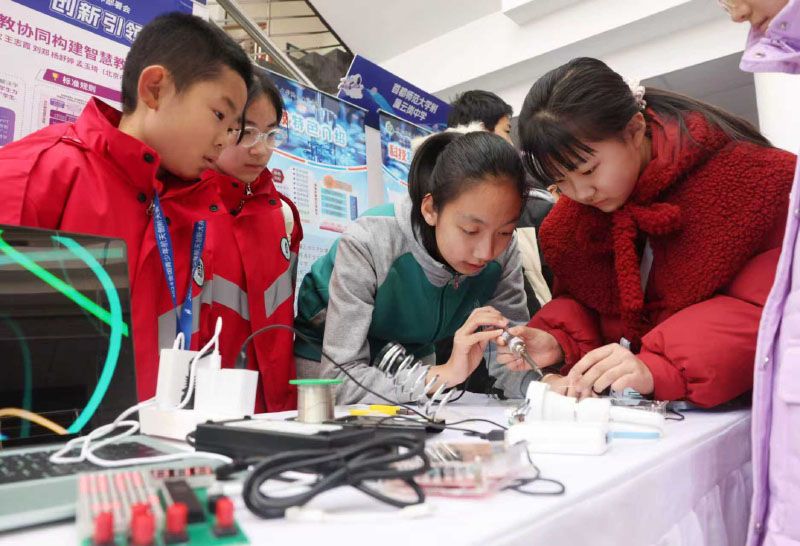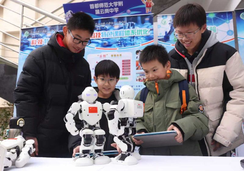 1月21日,以“科技赋能成长,创新引领未来”为主题的第43届丰台区学生科技节闭幕式暨科技嘉年华在北京十二中举行,并启动“星火启航计划”,通过提供“师资培训+课程体系搭建+赛事指导”的一揽子服务,共同推动丰台科技教育均衡发展。图为首都师范大学附属云冈中学同学操作机器人进行格斗表演。
