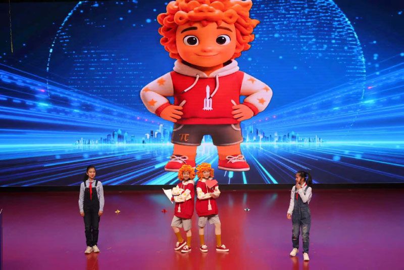 丰台区学生科技节的吉祥物“卢沟π狮”发布。