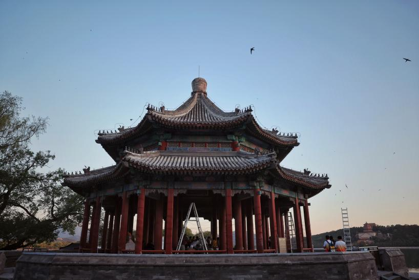 颐和园,雨燕环志工作在廓如亭启动。新京报记者 薛珺 摄