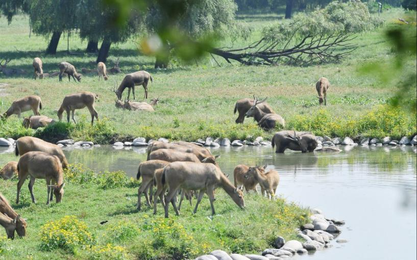 北京南海子麋鹿苑,鹿群在悠闲地吃草。新京报记者 李木易 摄