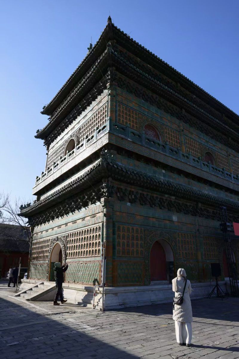 琉璃阁立面镶嵌1424尊无量寿佛琉璃像,是全国少见的清代官式琉璃建筑。