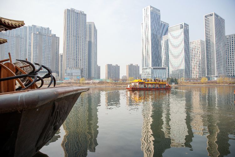北京城市副中心大运河游船启航。新京报记者 王子诚 摄