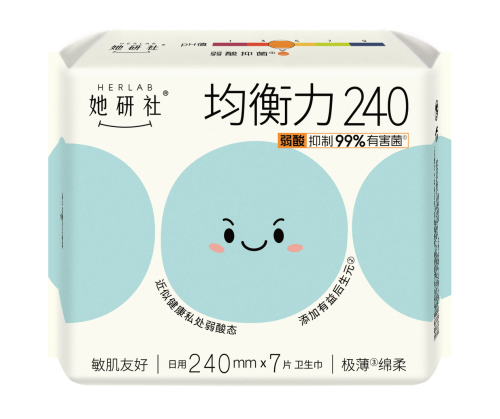 她研社执行标准:在满足基础理化指标前提下,通过自主研发的「均衡力」弱酸性面层技术,将面层pH值稳定在女性私处健康的弱酸范围内。